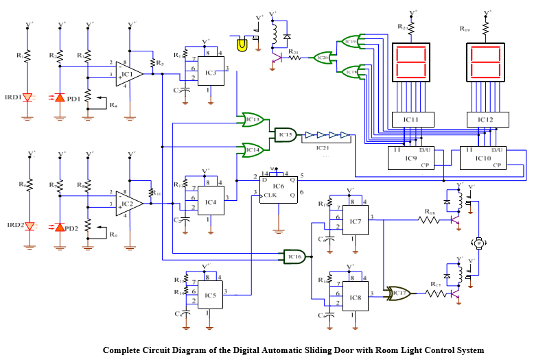 The performance of the system after test met design specifications. This system works on the principle of breaking an infrared beam of light, sensed by a photodiode. It consists of two transmitting infrared diodes and two receiving photodiodes. The first one is for someone coming in and the second one is for someone going out of the room. The photodiodes are connected to comparators, which give a lower output when the beam is broken and high output when transmitting normally.
